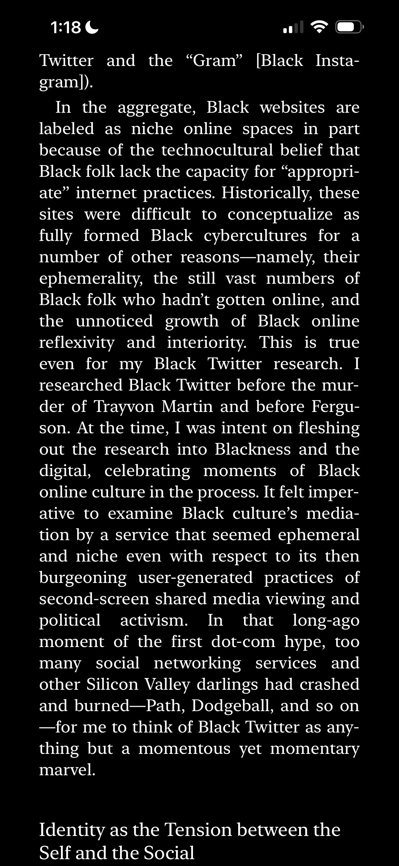On Black Twitter, the same person could drop a thread on algorithmic oppression in the morning and post thirst traps by afternoon, similar to the barbershop had always worked this way, this deep conversation about politics flowing into jokes about someone’s hairline, because at the end of the day, the private is the political.